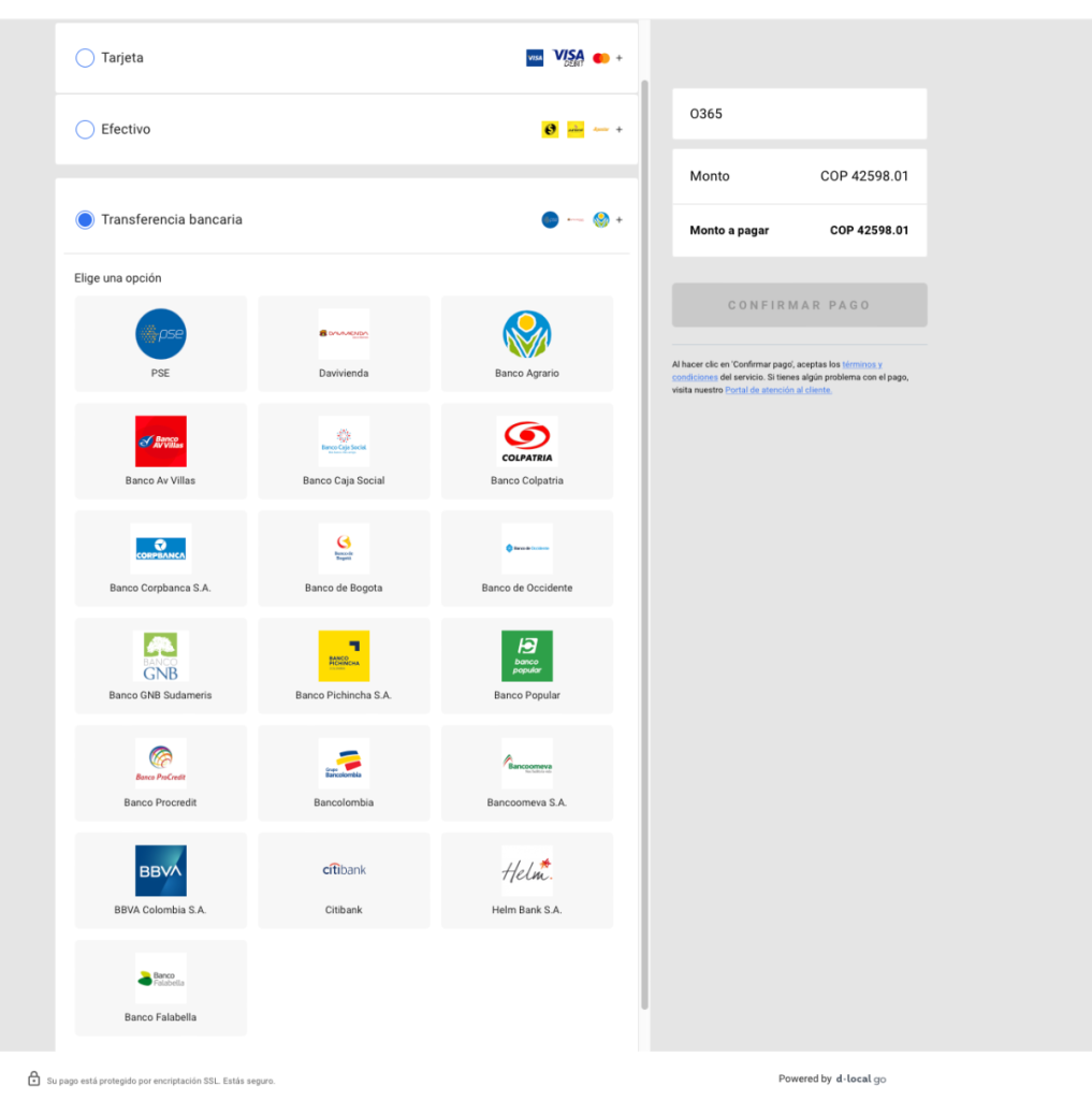 Tus pagos serán procesados en tu moneda local sin recargos, siempre el precio final marcado en el pedido es el que se cobrará, puedes usar Tarjeta de Debito, Credito, Transferencia Bancaria, Medios de Pago Locales en Efectivo, te dejamos una lista de los medios de pagos disponibles según tu País.