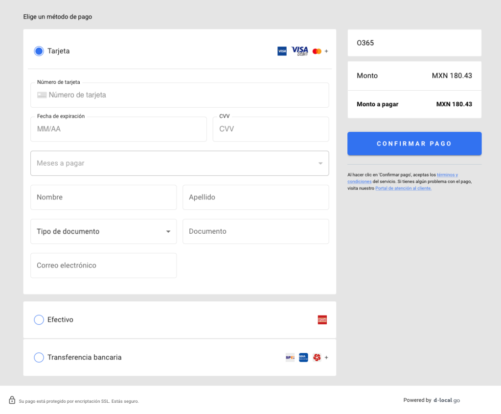 Tus pagos serán procesados en tu moneda local sin recargos, siempre el precio final marcado en el pedido es el que se cobrará, puedes usar Tarjeta de Debito, Credito, Transferencia Bancaria, Medios de Pago Locales en Efectivo, te dejamos una lista de los medios de pagos disponibles según tu País.
